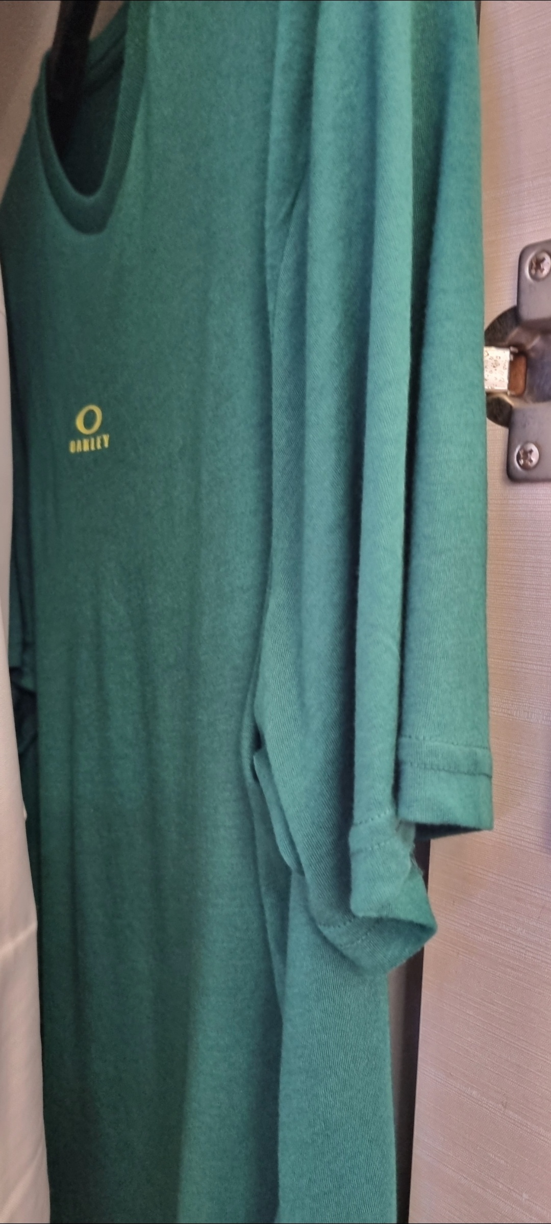 바크 뉴 숏 슬리브는 수분 위킹 원단으로 제작되어 건조하고 편안하게 사용할 수 있습니다. 이 클래식 핏 티는 현대 운동 스타일을 위한 오클리 이름과 타원 로고를 표시합니다.